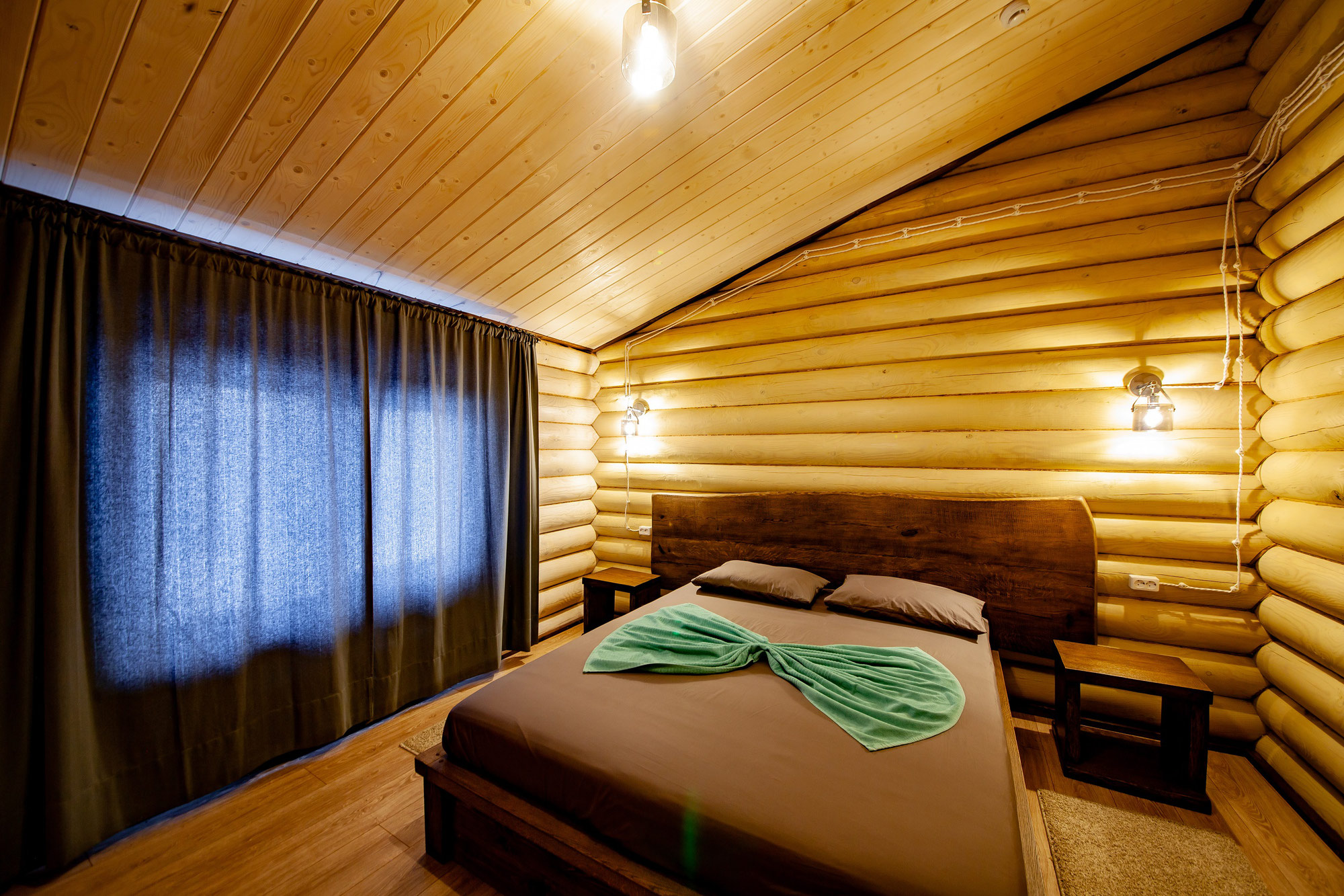 Дом «Винтаж» Вид дома: Большой шале. Домик с комфортным размещением до 10 гостей. Входит: жаркая парилка из кедра, бассейн, холодная купель, 3 спальни, зона отдыха, собственная зона барбекю возле дома. Кол-во спальных мест: 3 кровати King Size + 2 дивана Стоимость: 3000 руб/час.