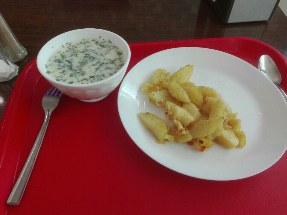 Нормальное такое кафе, но с салатами проблема: не умеют делать (.Остальное все норм.Принимают банковскую карту, есть разливное пиво(не знаю какое, не пробовал )