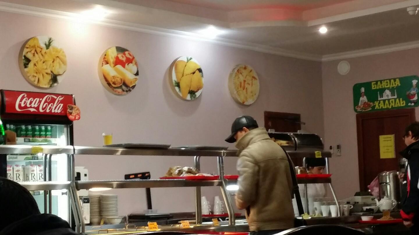 Можно быстро и не дорого что то поесть. Блюда мусульманской кухни, достаточно много масла в еде. Есть выпечка и соки.
