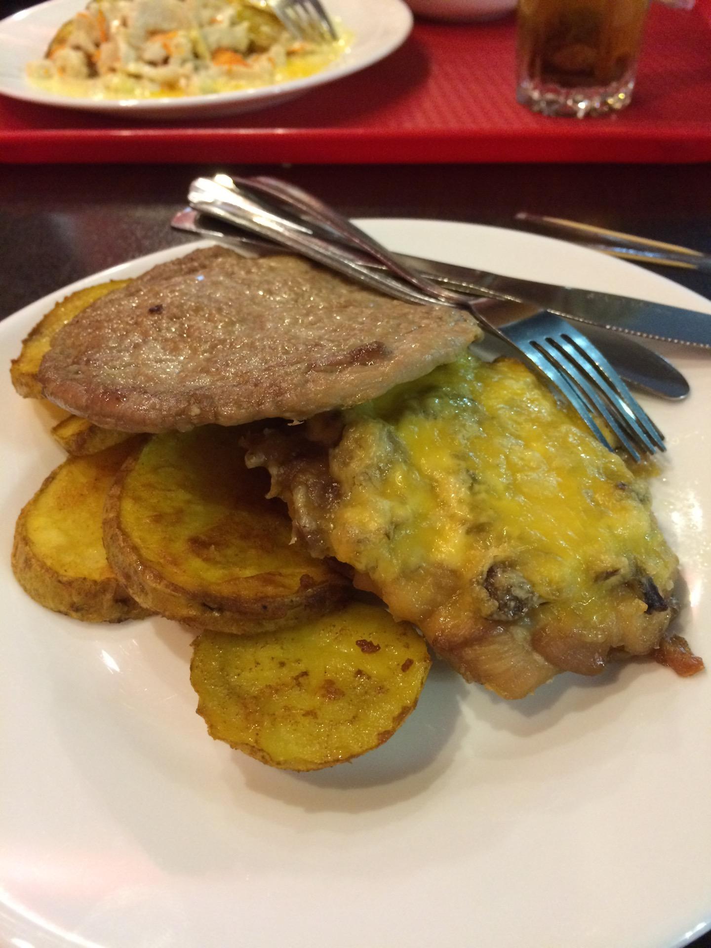 Мясо по французски говно, поменял на стейк из форели.